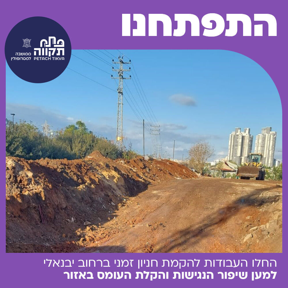 במסגרת העבודות, החלה הקמתו של חניון זמני ברחוב יבנאלי. מטרת החניון היא לשפר את הנגישות באזור ולהקל על עומסי התנועה והחניה.