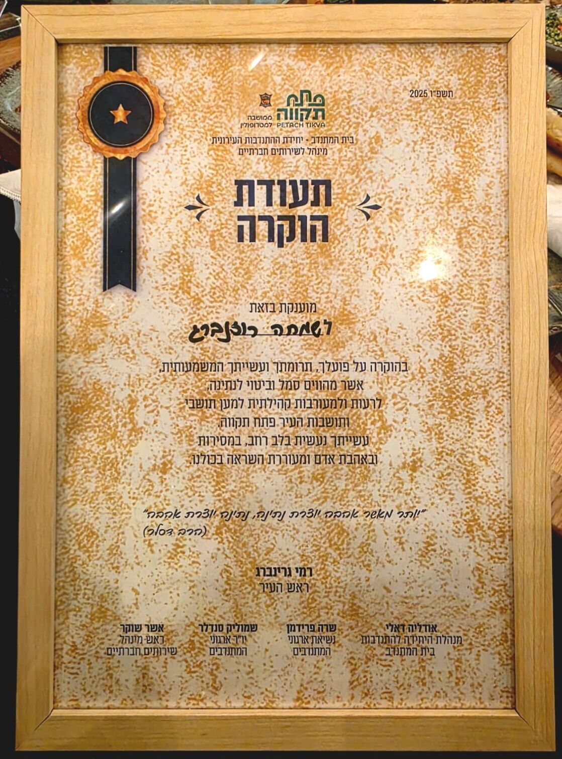 אמש (נר שני של חנוכה) נערך בעיר פתח־תקווה טקס הוקרה וחלוקת "אות המתנדב הבינלאומי", בהשתתפות מתנדבים מארגוני החירום והחסד הפועלים בעיר, ביוזמת בית המתנדב בעירייה.