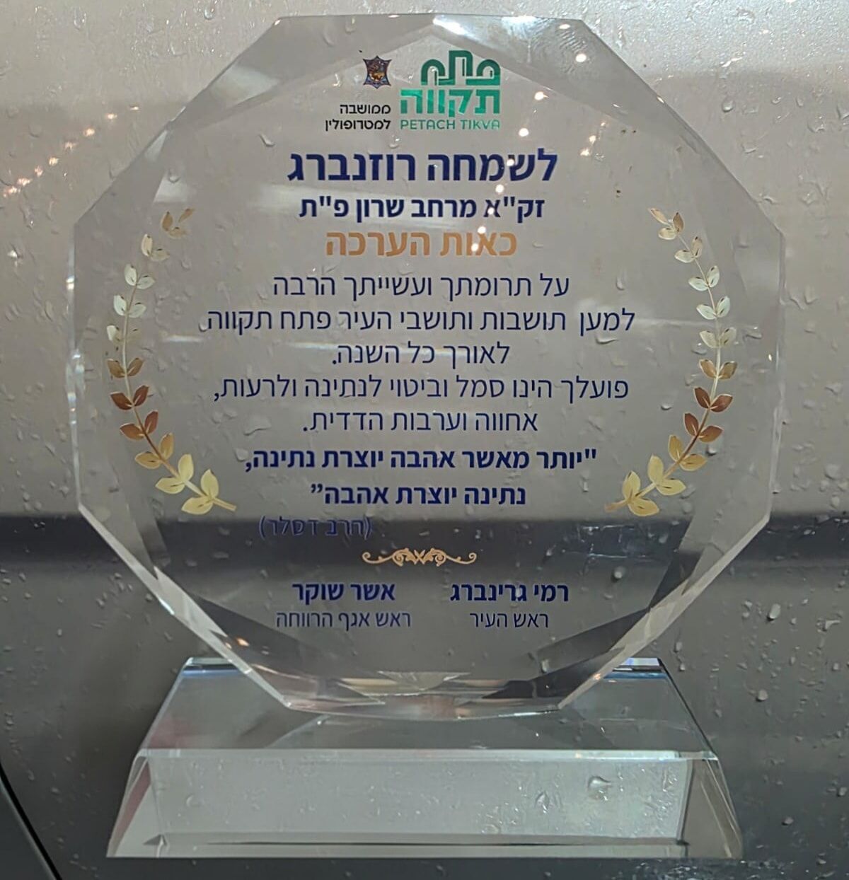 מתנדב זק"א שמחה רוזנברג קיבל את "אות המתנדב" של עיריית פתח תקווה בטקס הוקרה חגיגי