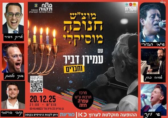 חגיגת חנוכה בפתח תקווה: עמירן דביר יארח את שימי תבורי, קובי ברומר ואמנים נוספים במרכז עופרה חזה במוצאי שבת 20.12.25