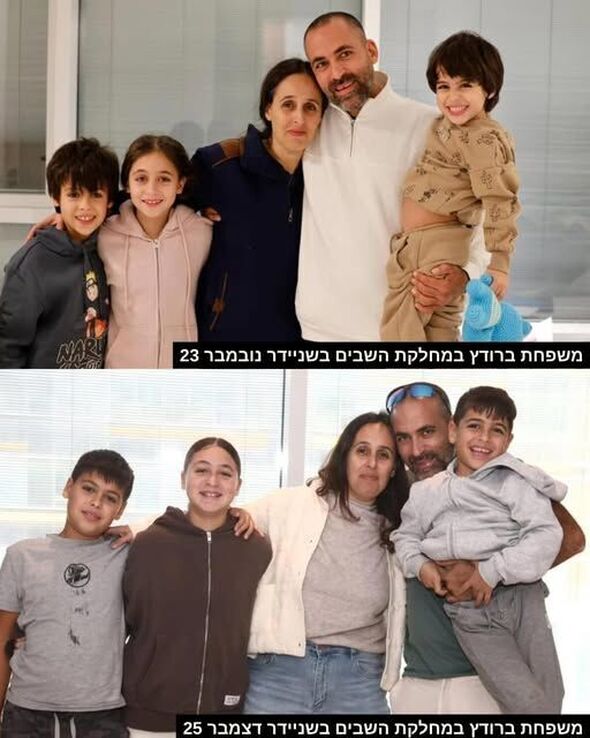 רגע מרגש במיוחד נרשם אתמול (רביעי) במרכז שניידר לרפואת ילדים מקבוצת כללית, כאשר הגר ואביחי ברודץ ושלושת ילדיהם הגיעו בהרכב משפחתי מלא למחלקת השבים. המשפחה הגיעה למקום על מנת להדליק נר רביעי של חנוכה במחלקה שבה שהו בחודש נובמבר 2023, עם חזרתם מהשבי במסגרת העסקה הראשונה להשבת החטופים.