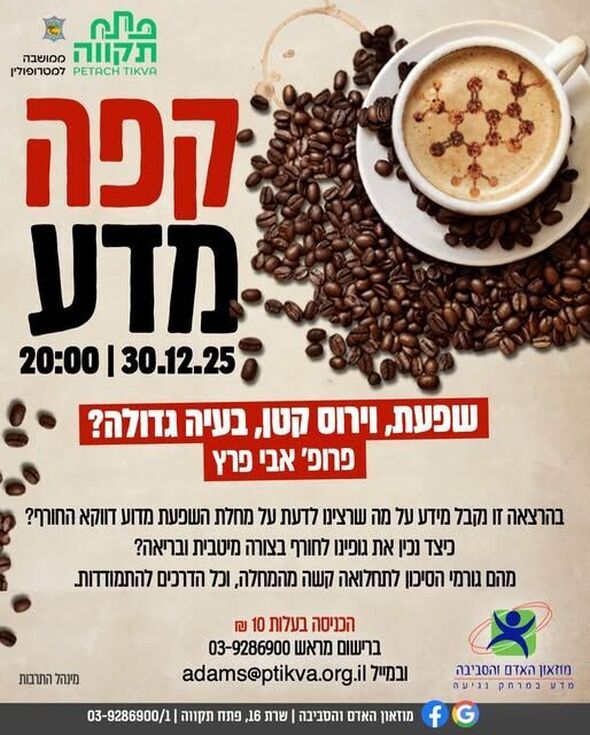 במסגרת סדרת ההרצאות "קפה מדע", תתקיים במוזיאון האדם והסביבה בפתח תקווה הרצאה מרתקת בנושא תחלואת החורף. ההרצאה תעסוק בשאלות מדוע אנו נוטים לחלות יותר בעונת החורף ומה ניתן לעשות על מנת להתכונן נכון לעונת הווירוסים.
