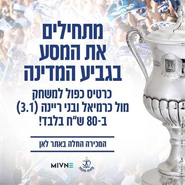 לרכישת כרטיס למשחק הגביע בלבד (בתוספת עמלה): לחצו כאן
