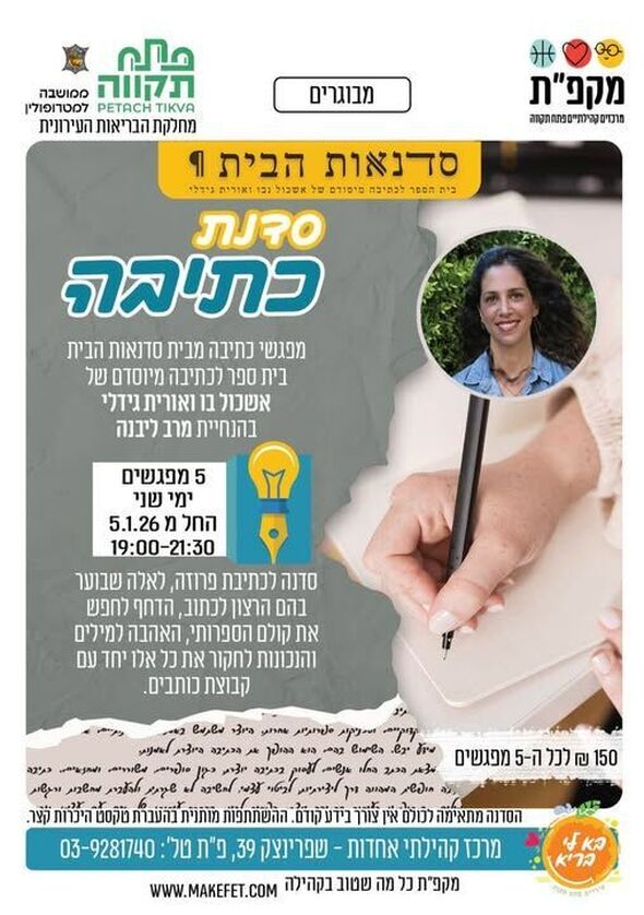 סדנת כתיבה בהנחיית מרב ליבנה תיפתח במרכז קהילתי אחדות בפתח תקווה החל מיום שני 5.1