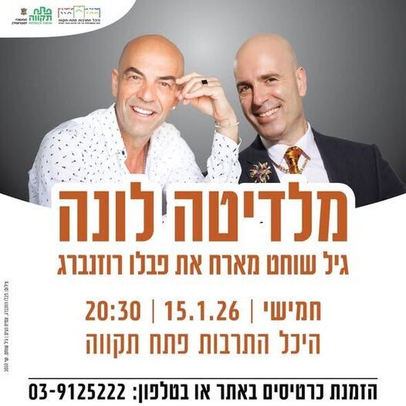 גיל שוחט מארח את פבלו רוזנברג במופע "מלדיטה לונה" בהיכל התרבות פתח תקווה ב-15.1.26