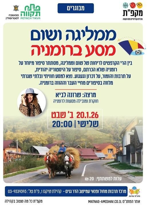 מסע אל רומניה של פעם: הרצאה מרתקת תתקיים במתנ"ס עמישב בפתח תקווה ביום שלישי 20/1