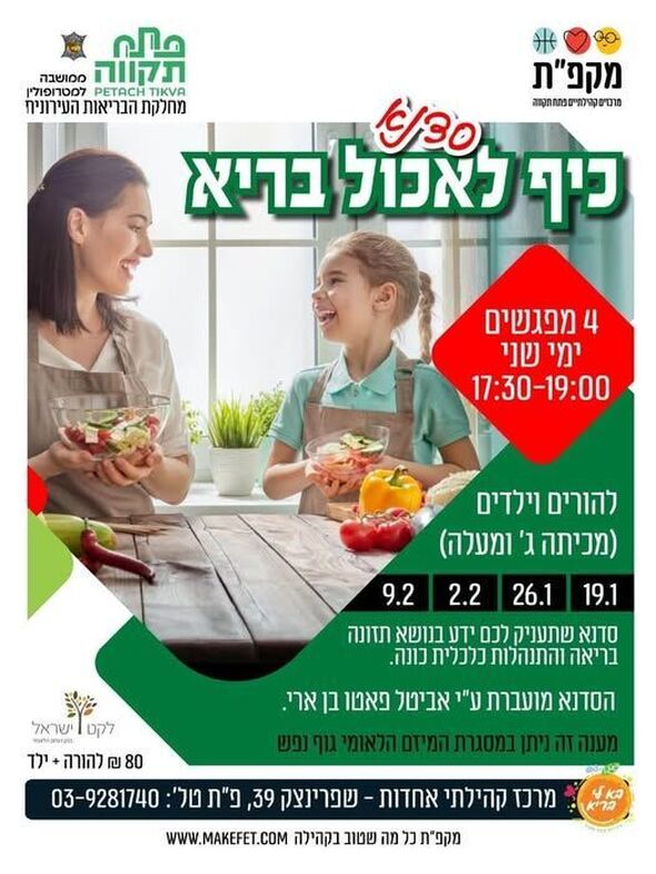 סדנה ייחודית להורים וילדים במרכז קהילתי אחדות בפתח תקווה: שילוב של תזונה בריאה והתנהלות כלכלית נכונה החל משני 19 בינואר