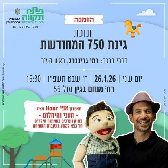 עיריית פתח תקווה מזמינה את התושבים לטקס חנוכת גינת 750 המחודשת ברחוב מנחם בגין ביום שני ה-26.1.26 הכולל מופע לילדים