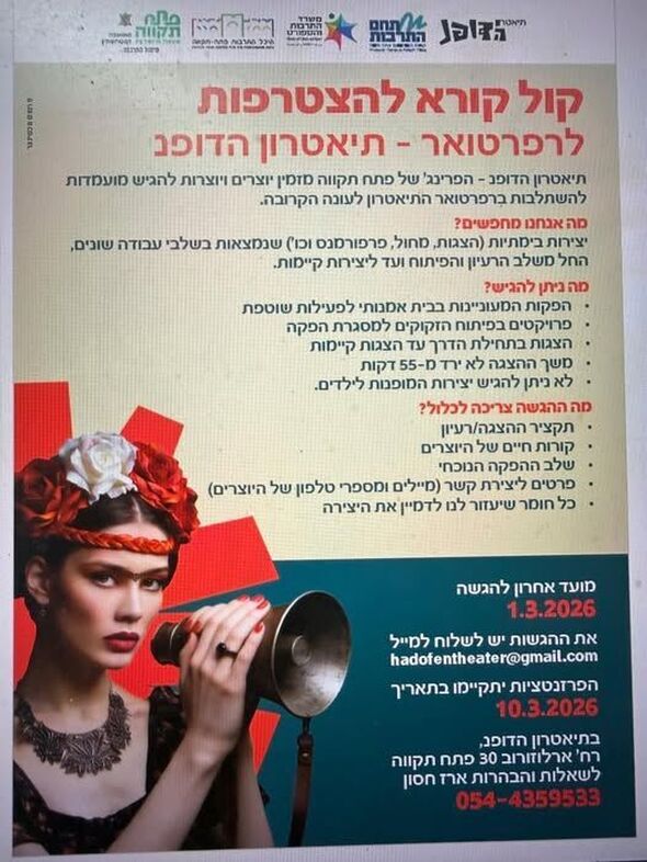 תיאטרון הדופנ בפתח תקווה מפרסם קול קורא ליוצרים להצטרפות לרפרטואר העונה הקרובה - מועד אחרון להגשה: 1.3.2026