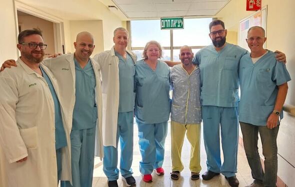 במהלך אשפוזו, צולם עמית יחד עם הצוות שליווה אותו לאורך הדרך. בתמונה משתתפים: פרופ' אלי עטר (מנהל מערך הדימות), פרופ’ ערן שדות (מנהל היחידה לניתוחי כבד-לבלב-דרכי מרה), ד"ר עמרי סולימני (רופא בכיר ביחידה לניתוחי כבד־לבלב־דרכי מרה ומנהל תחום מחלות לבלב דלקתיות), אילנה אייזנברג (אחות מומחית קלינית ביחידה), ד''ר אורן זלוטניק (רופא בכיר) וד"ר ג'רמי אליסטון (סגן מנהל מערך ההרדמה).