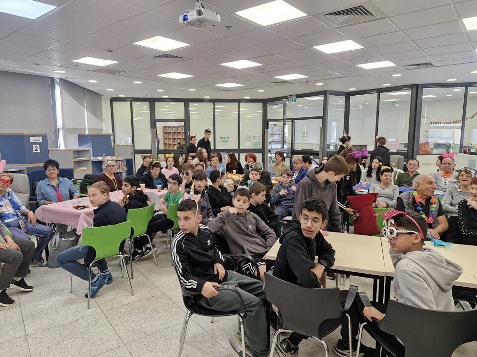 מפגש פורימי בין-דורי: תלמידי חטיבת יצחק שמיר בפתח תקווה חגגו עם כיתת הגמלאים