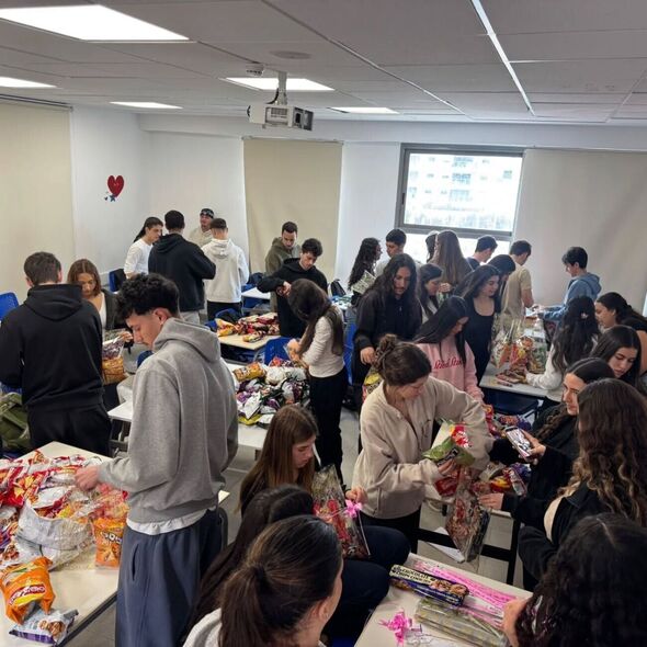 לקראת החג: תלמידי תיכון "משה ארנס" בפתח תקווה ארזו 80 משלוחי מנות ללוחמי גדוד 8111