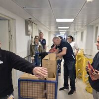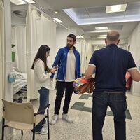 מתנדבי עמותת "הכחולה", יחד עם שוער קבוצת הכדורגל הפועל 'מבנה' פתח תקווה, עומר כץ ובת זוגו, הגיעו לבית החולים כשהם מצוידים במאות משלוחי מנות. המבקרים עברו בין המחלקות השונות במקום וחילקו את המשלוחים למטופלים ולצוותים.