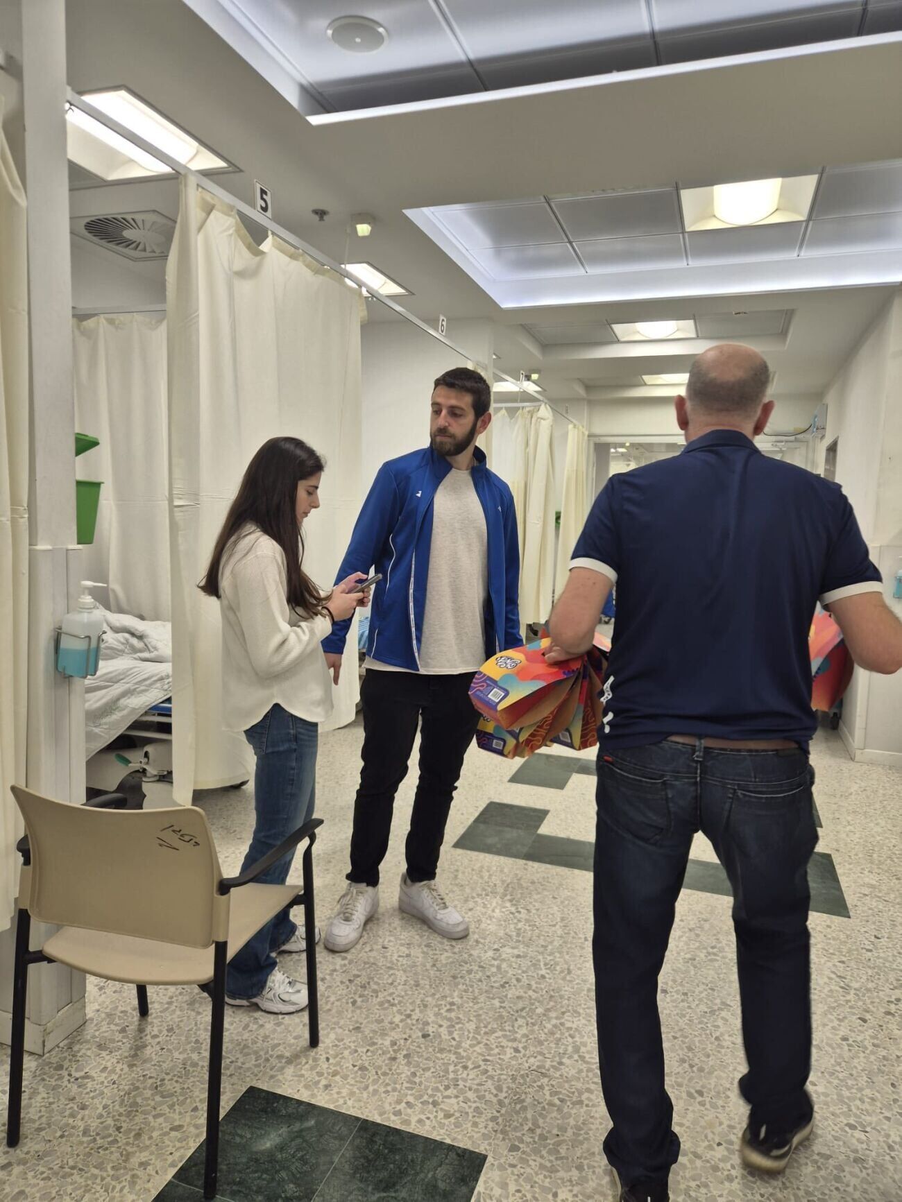 לרגל פורים: שוער הפועל פתח תקווה ומתנדבי עמותת "הכחולה" חילקו מאות משלוחי מנות בבית חולים השרון