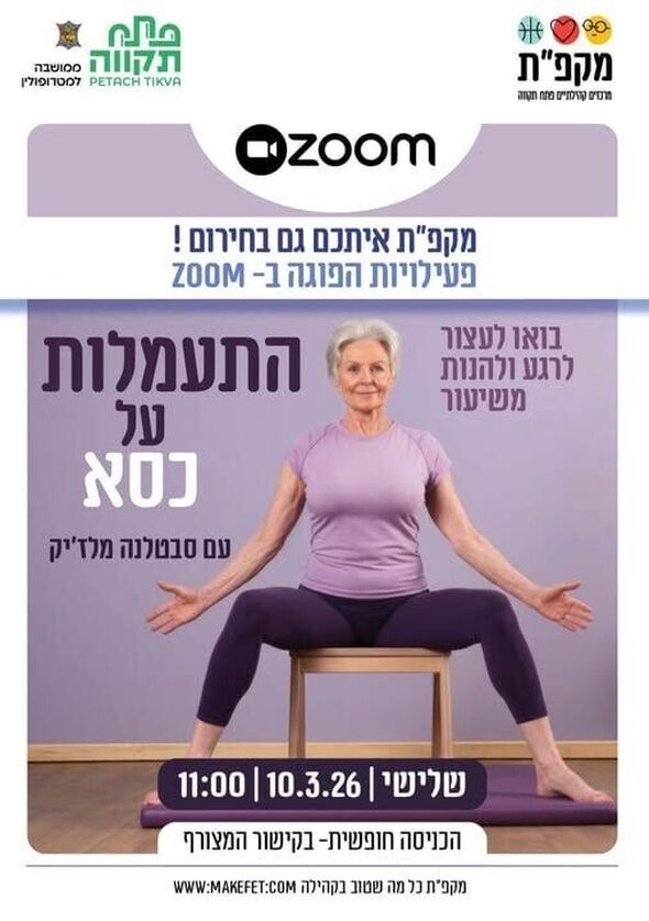פעילות הפוגה בפתח תקווה: שיעור התעמלות על כיסא בזום ב-10.03.2026