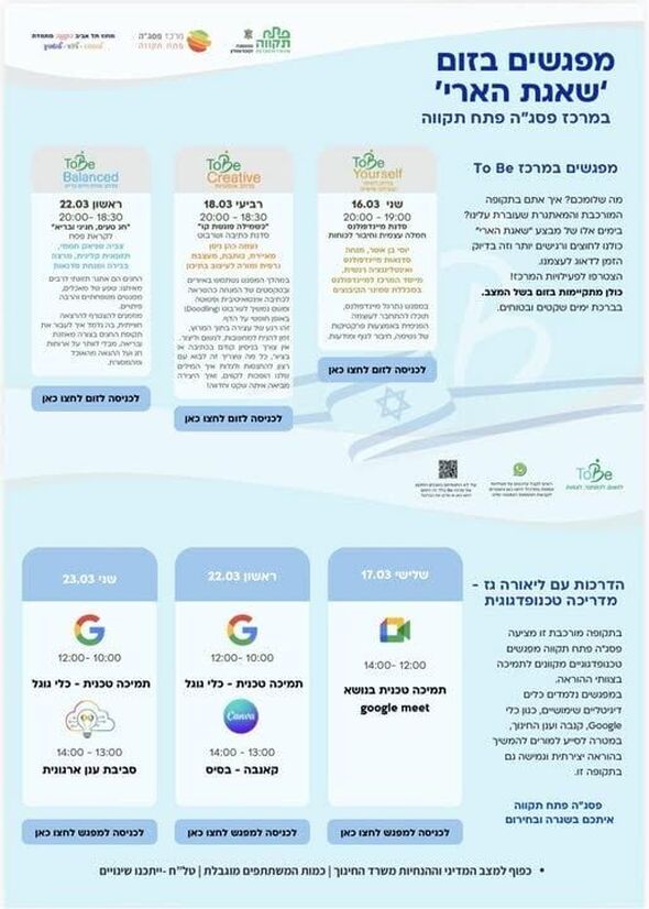 פרטים נוספים, התעדכנות במועדים ולהרשמה למפגשים השונים, ניתן למצוא בעמוד הפייסבוק של מרכז פסג"ה פתח תקווה.