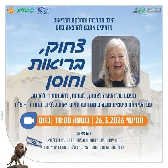 צחוק, בריאות וחוסן: מפגש זום חינמי מטעם היכל התרבות פתח תקווה - 26.03.2026