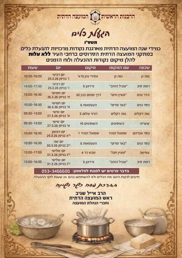 לקראת חג הפסח: המועצה הדתית פתח תקווה מפעילה עמדות להגעלת כלים ללא עלות ברחבי העיר - להלן כל המוקדים