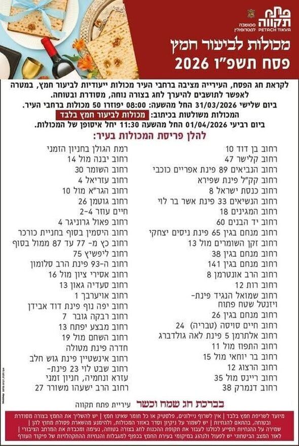 היערכות לפסח בפתח תקווה: העירייה תציב 50 מכולות לביעור חמץ החל מה-31.03.2026 ותאריך את שעות האיסוף