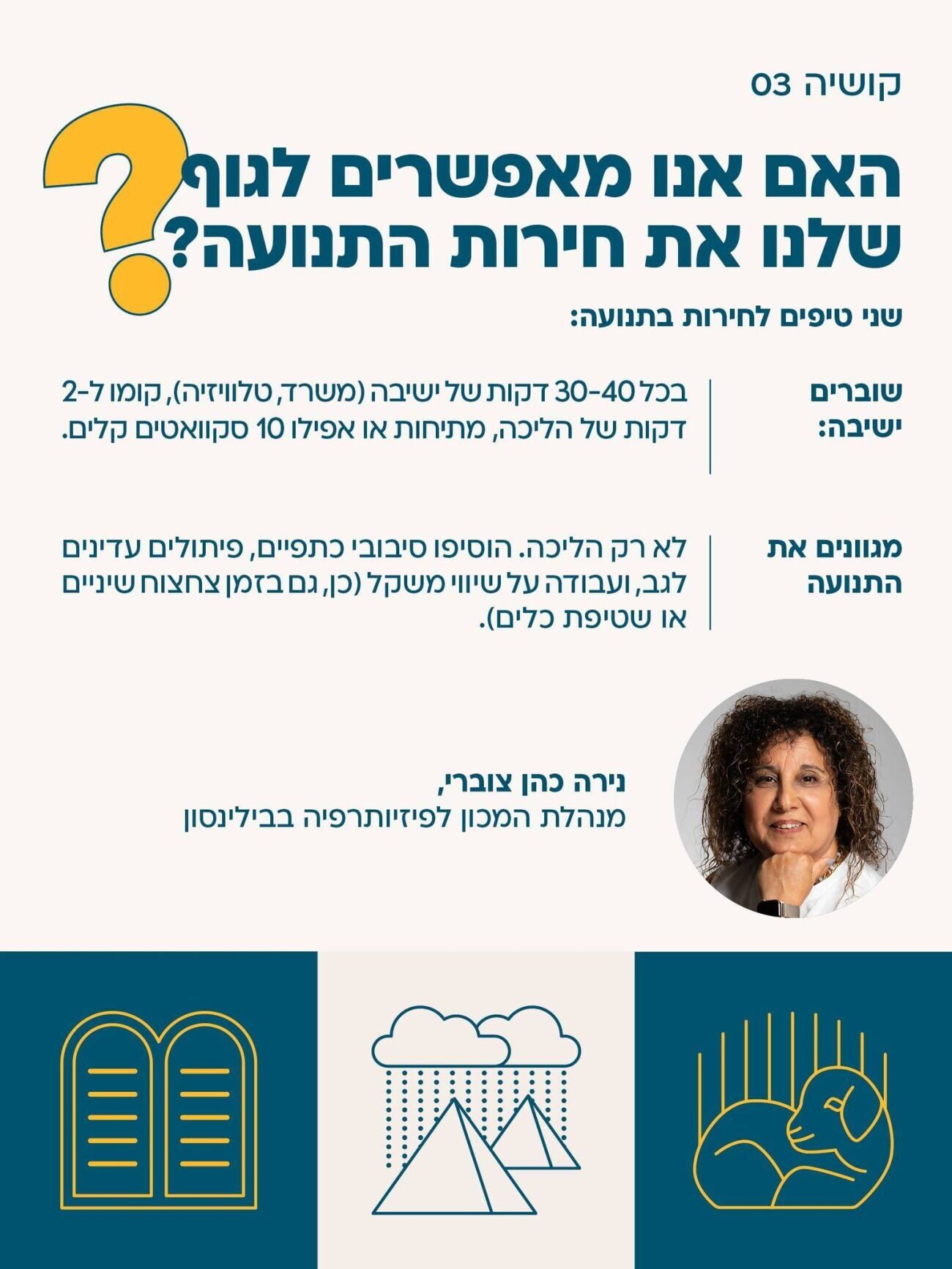 קושיה שלישית: האם אנו מאפשרים לגוף שלנו את חירות התנועה?
