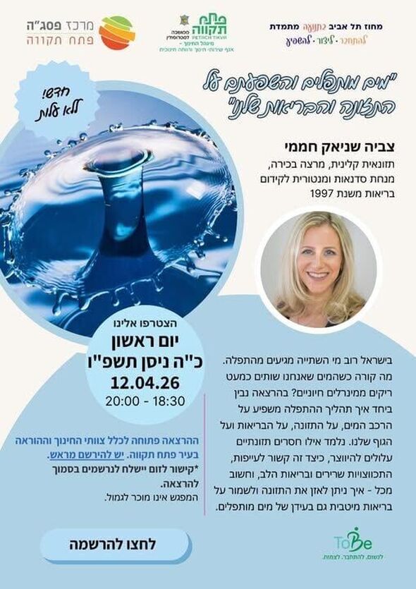 הרצאה ללא עלות לצוותי חינוך בפתח תקווה: ההשפעה של מים מותפלים על הבריאות (12.04.2026)