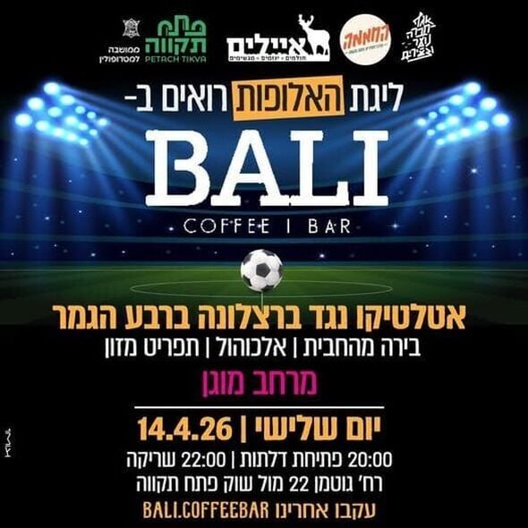 חגיגת כדורגל בפתח תקווה: הקרנת משחק רבע גמר ליגת האלופות בין אתלטיקו לברצלונה ב-14.4.26
