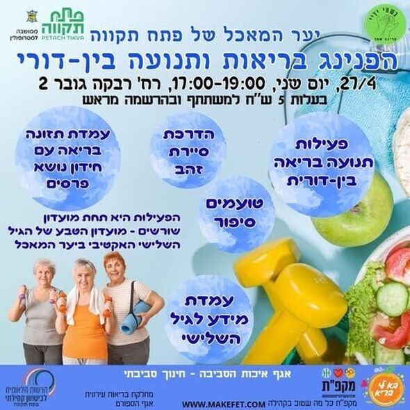 הפנינג בריאות ותנועה בין-דורי לסבים, סבתות ונכדים יתקיים ביער המאכל בפתח תקווה ב-27 באפריל