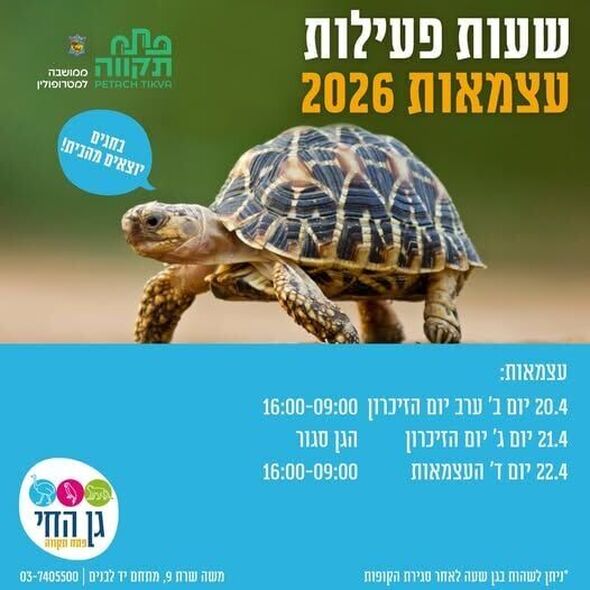לקראת החגים: פורסמו שעות הפעילות של גן החי בפתח תקווה לימי הזיכרון והעצמאות (20-22 באפריל 2026)
