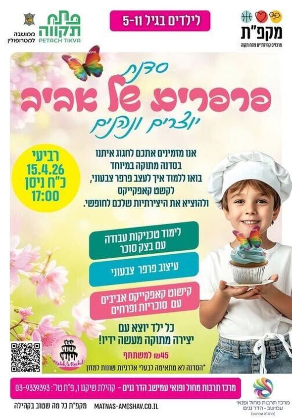 חוגגים עונה חדשה בפתח תקווה: סדנת קינוחי קאפקייקס "פרפרים של אביב" לילדים במתנ"ס עמישב ב-15.4.26