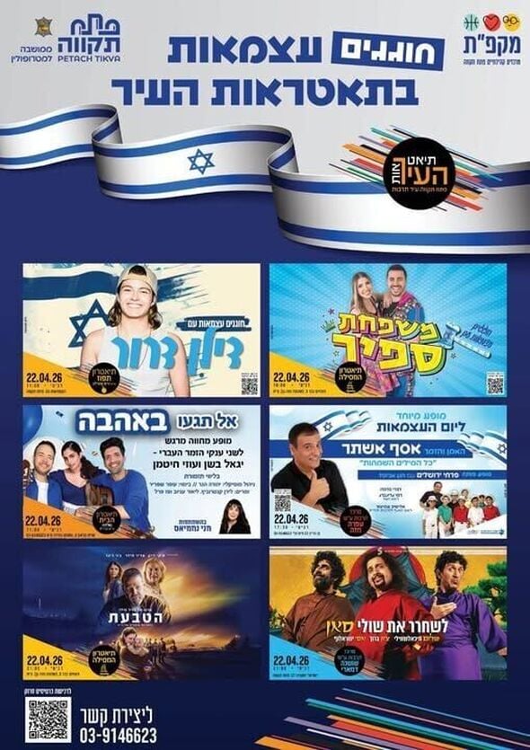 חוגגים עצמאות בפתח תקווה: רשימת המופעים והסרטים המלאה בתיאטראות העיר שתתקיים ב-22.04.2026