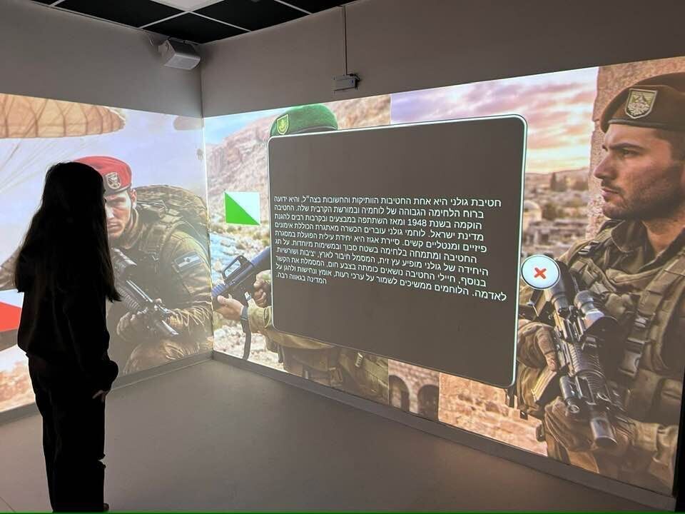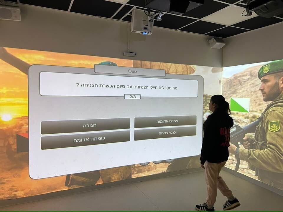 הפעילות החינוכית התקיימה בחדר הקרנות אינטראקטיבי, במסגרתה הוצגו על גבי קירות הכיתה חידונים ומידע אודות החטיבות הלוחמות השונות בצה"ל. התלמידים לקחו חלק פעיל בשיעור וענו על שאלות טריוויה הנוגעות, מתוך הכתוב והנלמד, ליחידות העילית וההיסטוריה של חטיבת גולני, וכן לסמלים ושלבי ההכשרה של לוחמי חטיבת הצנחנים.