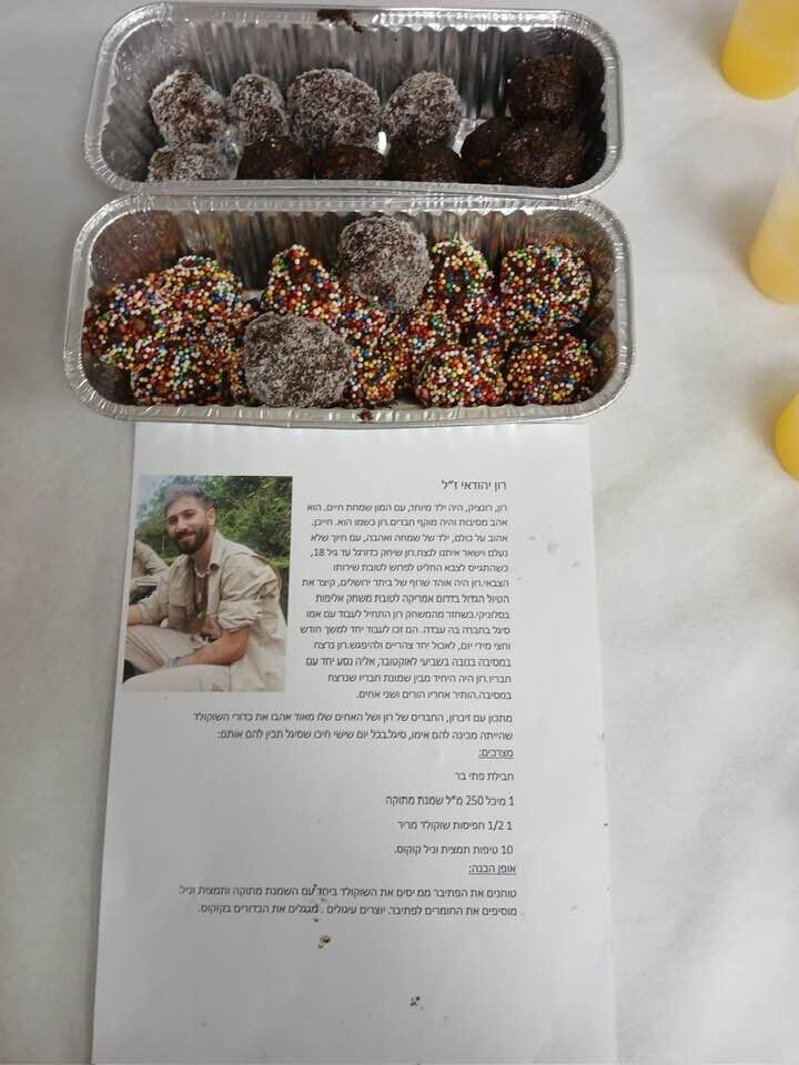 מתוך חיבור אישי ומשמעותי לזכרם של הנופלים, בחרו התלמידים להנציח אותם בדרך ייחודית, והכינו יחד את המתכונים והמאכלים שהיו אהובים עליהם במיוחד. במהלך הפעילות הכינו התלמידים עוגת תפוזים, לזכרו של עמית בן יגל ז"ל, וכדורי שוקולד, לזכרו של רון יהודאי ז"ל.
