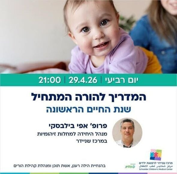 מרכז שניידר לרפואת ילדים, הממוקם בפתח תקווה, יערוך הרצאה מקוונת שתעסוק בשנת החיים הראשונה של תינוקות ובכלים לגדל תינוק בריא. המפגש מיועד להורים לתינוקות וכן לאבות ואמהות המצפים לילד.