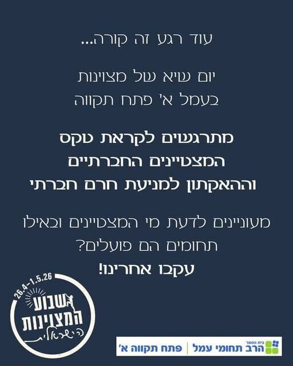 בית הספר הרב תחומי עמל א' בפתח תקווה יציין מחר (רביעי, 29.4) יום שיא מיוחד של מצוינות, יוזמה ועשייה. האירוע מתקיים במסגרת אירועי "שבוע המצוינות הישראלית 2026", הנערך בין התאריכים 26 באפריל ל-1 במאי.