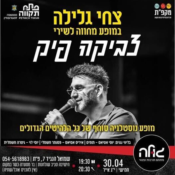 ערב מחווה לשירי צביקה פיק: צחי גלילה יופיע במועדון הגולה בפתח תקווה ב-30 באפריל 2026