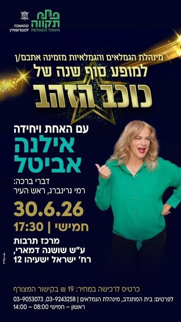 מופע סיום "כוכב הזהב" לגמלאי פתח תקווה עם אילנה אביטל ייערך ב-30.06.2026