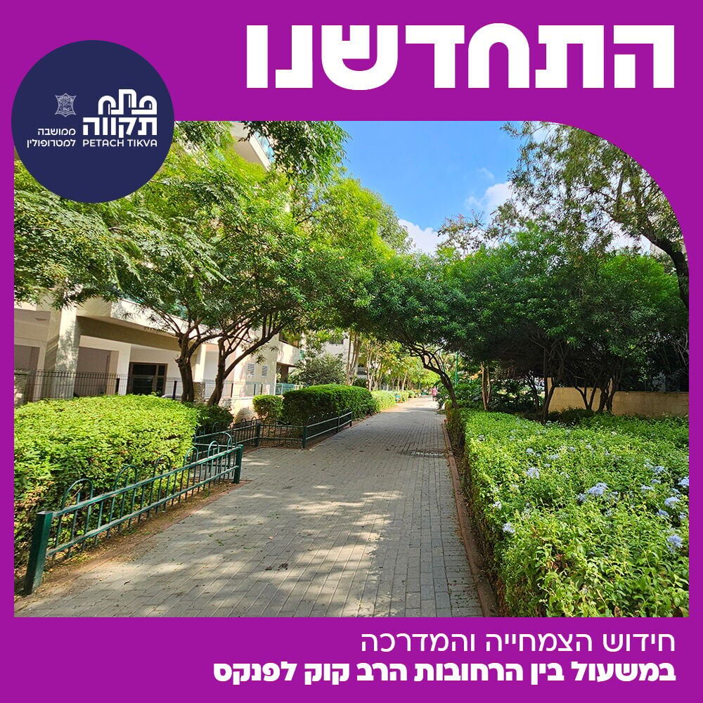- חידוש הצמחייה והמדרכה במשעול בין רחוב הרב קוק לפנקס.