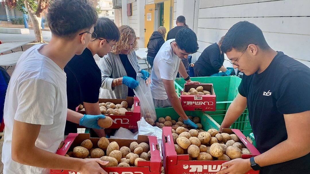 תלמידים מקיף רביבים בראשון לציון התנדבו באריזת סלי ירקות למשפחות נזקקות