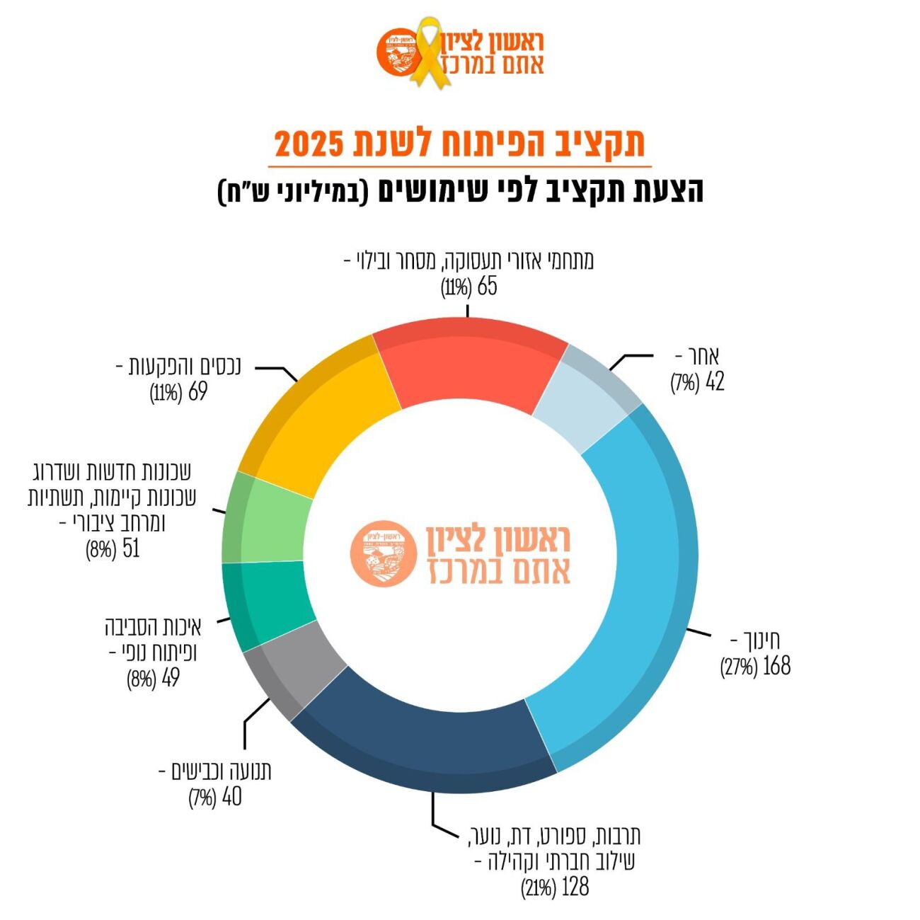 אמש אושר תקציב עיריית ראשון לציון לשנת 2025. התקציב לשנה הקרובה יעמוד על סך של 2.919 מיליארד שקל – גידול של כ- 7.3% לעומת התקציב המאושר ל-2024. תקציב החינוך יהווה כ-38% מסך התקציב הכולל ויעמוד על כ-1.119 מיליארד שקל; תקציב הניקיון יגדל בכ-19 מיליון שקל לכ-273 מיליון שקל. לאור הימשכות המלחמה, תקציב העירייה כולל כ-3 מיליון שקלים לטובת המשך מתן מענה לתגבור אבטחה בשכונות, במקלטים ובמוסדות חינוך; ולראשונה, בהוראת ראש העירייה, יכלול התקציב גם סיוע להקמת מערך אבלות עבור כלל תושבי העיר.