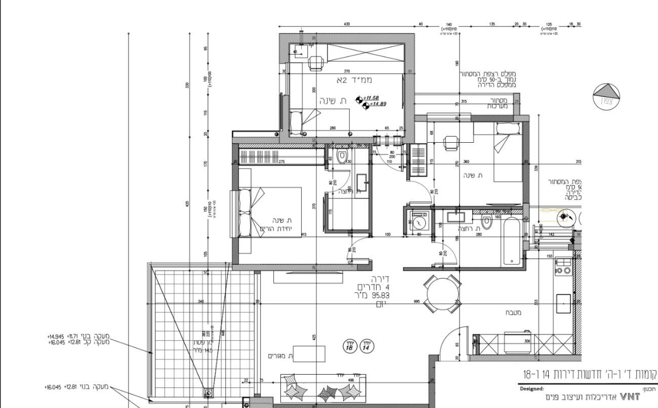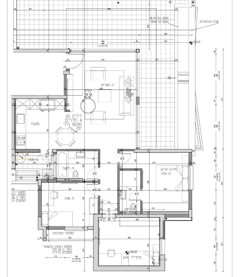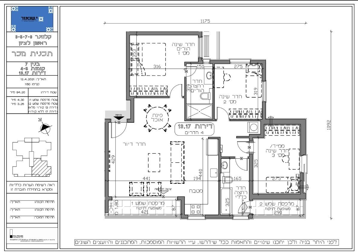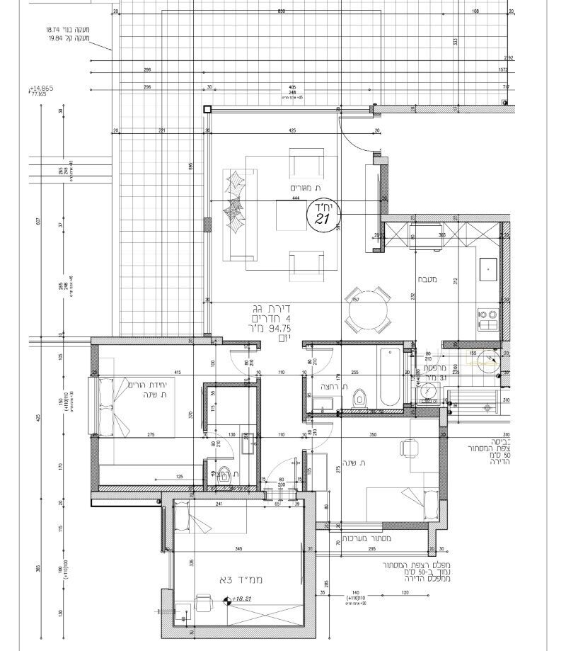 בגודל 94 מ"ר - 98 מ"ר לא כולל שטח מרפסות שמש