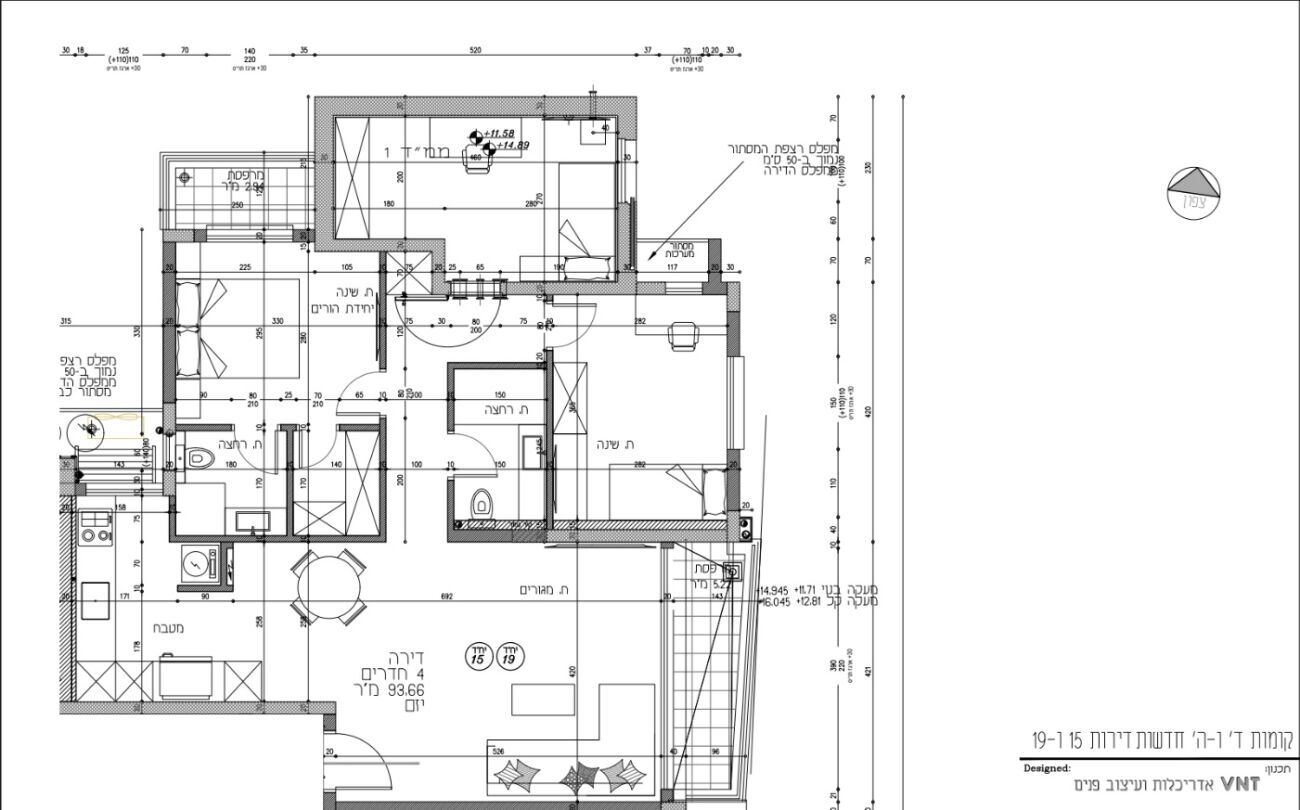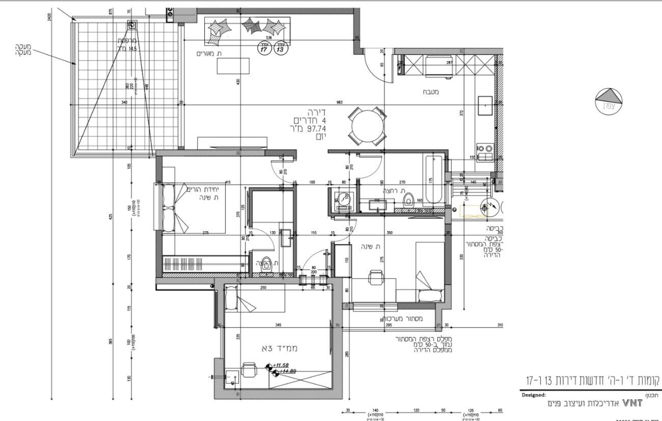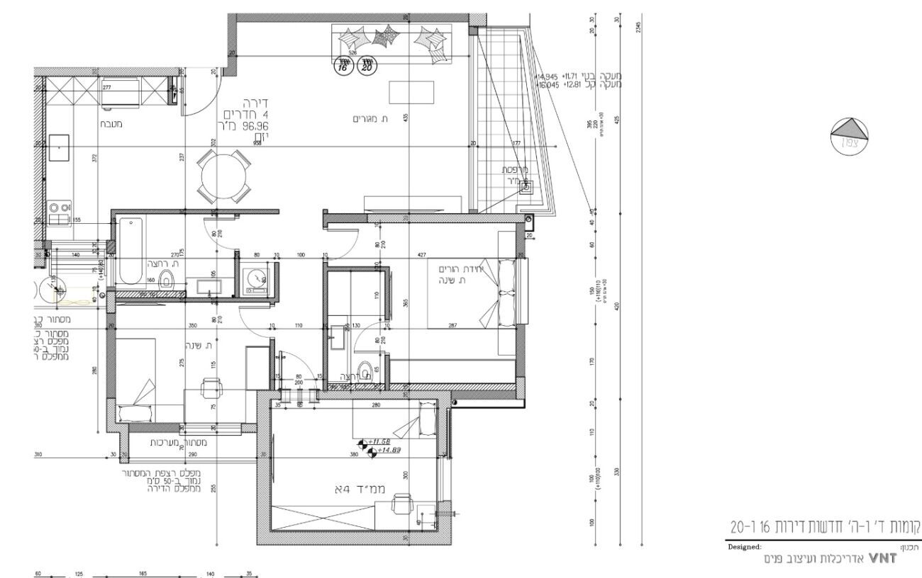 בגודל 94 מ"ר - 98 מ"ר לא כולל שטח מרפסות שמש
