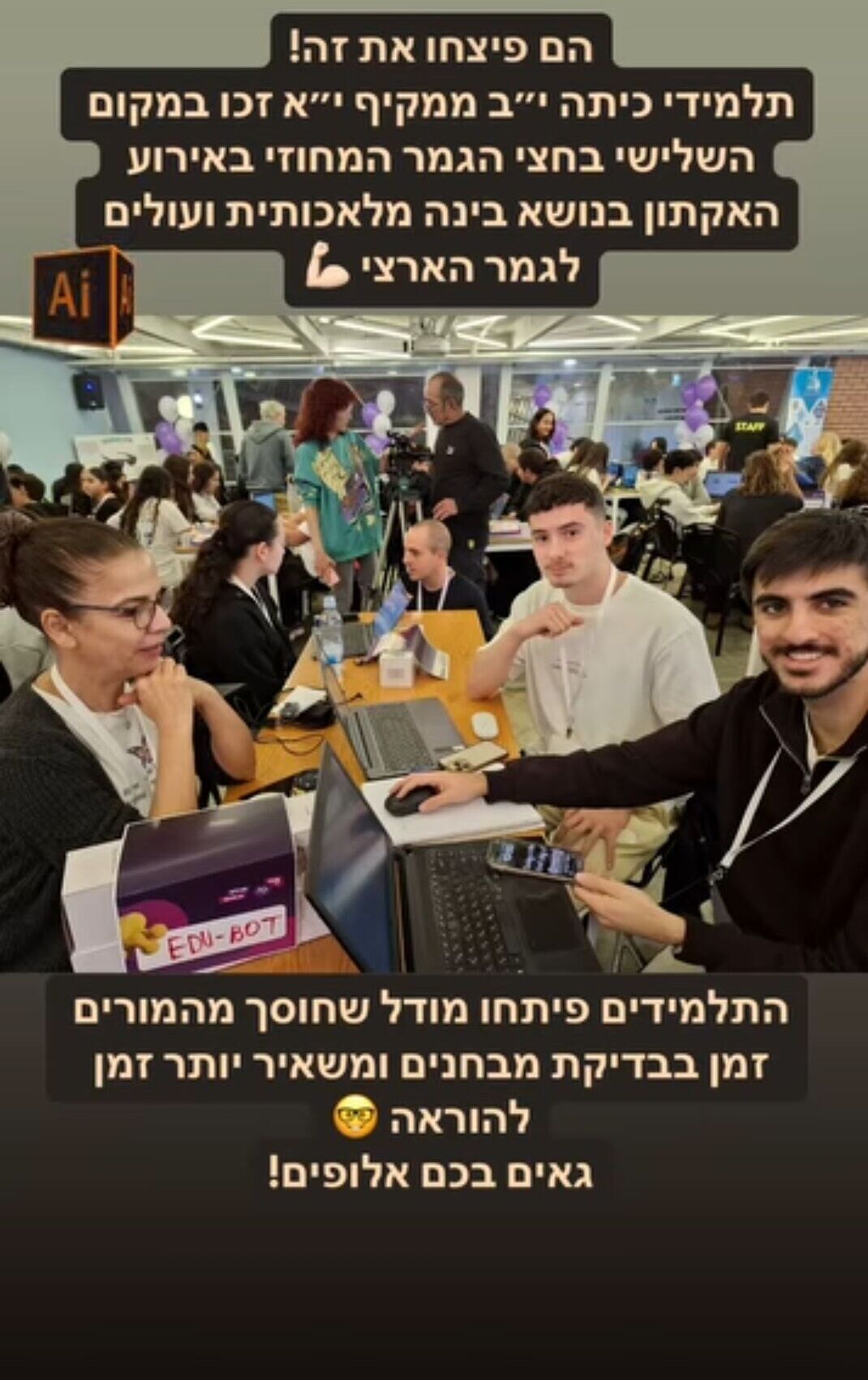 אמש התקיים השלב המחוזי של תחרות startcup AI. תוכנית בינה מלאכותית לכל היא תוכנית שמוביל משרד החינוך בשנת הלימודים תשפ"ה במטרה להרחיב את הלמידה החדשנית, האישית, הדיגיטלית וקידום אקדמיזציה. התחרות נותנת הזדמנות לתלמידים להוציא לפועל רעיונות או מיזמים שנותנים מענה לבעיות בחיי היום יום והפעם באמצעות הבינה המלאכותית. אליפות Start Cup לנוער של משרד החינוך היא תוכנית אשר מקרבת את תלמידי החטיבה והתיכון אל עולם היזמות האמיתי, באמצעות למידה והתנסות עצמית בתהליכים אותנטיים של פיתוח רעיון לתוצר