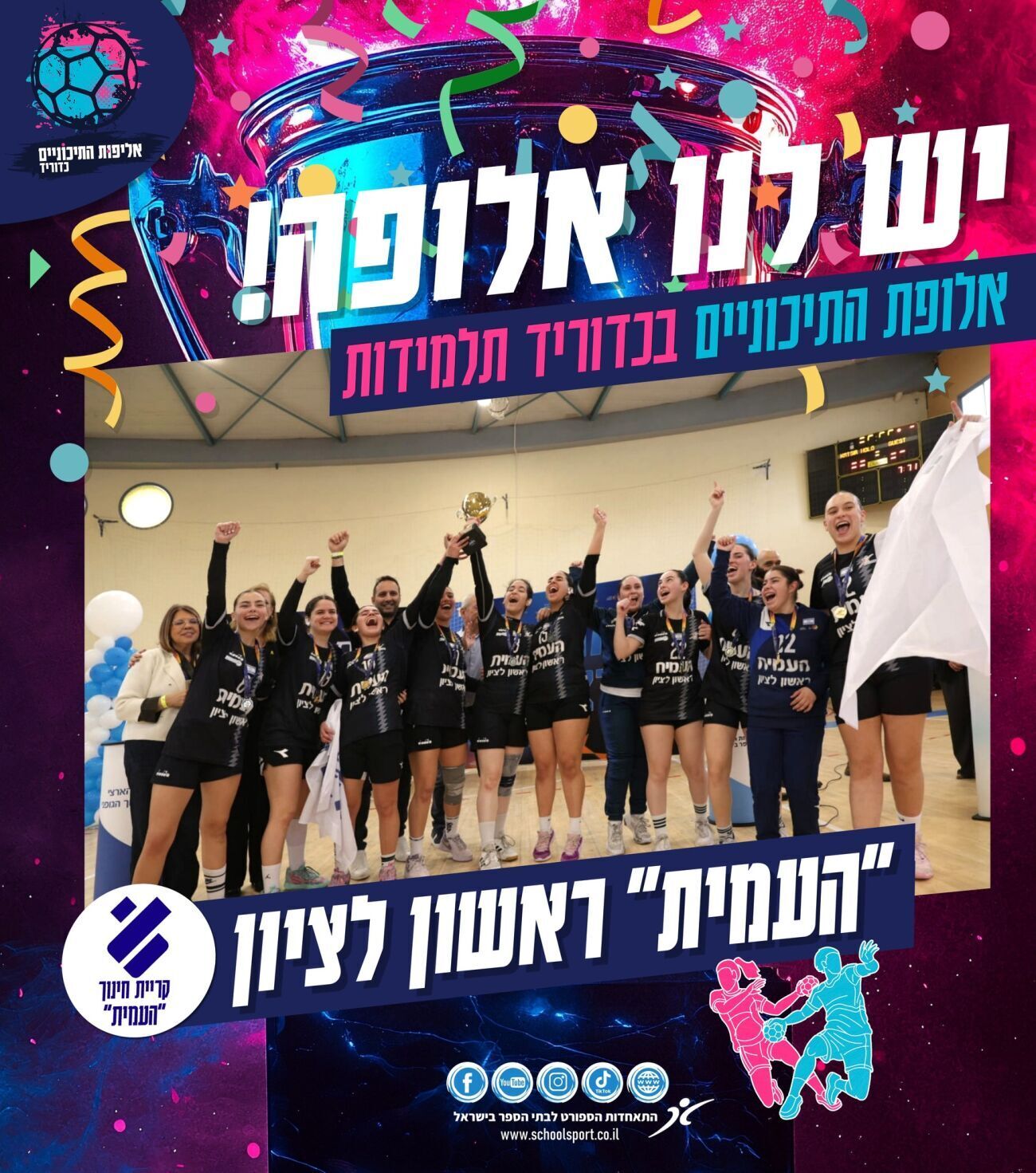 תיכון "עמית" ראשון לציון זכה בדאבל היסטורי בכדוריד התיכוניים: הן קבוצת הבנות והן קבוצת הבנים זכו באליפות