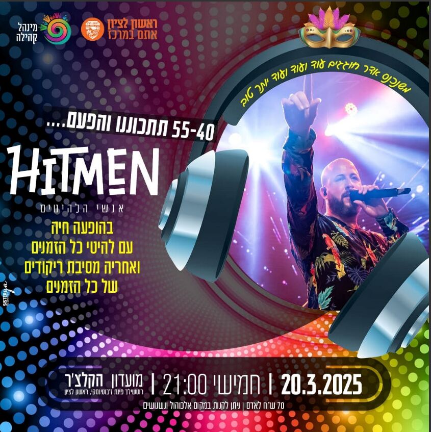 בתוכנית: מופע לייב של להקת "היטמן" ולאחריה מסיבת ריקודים עם להיטים מכל הזמנים.