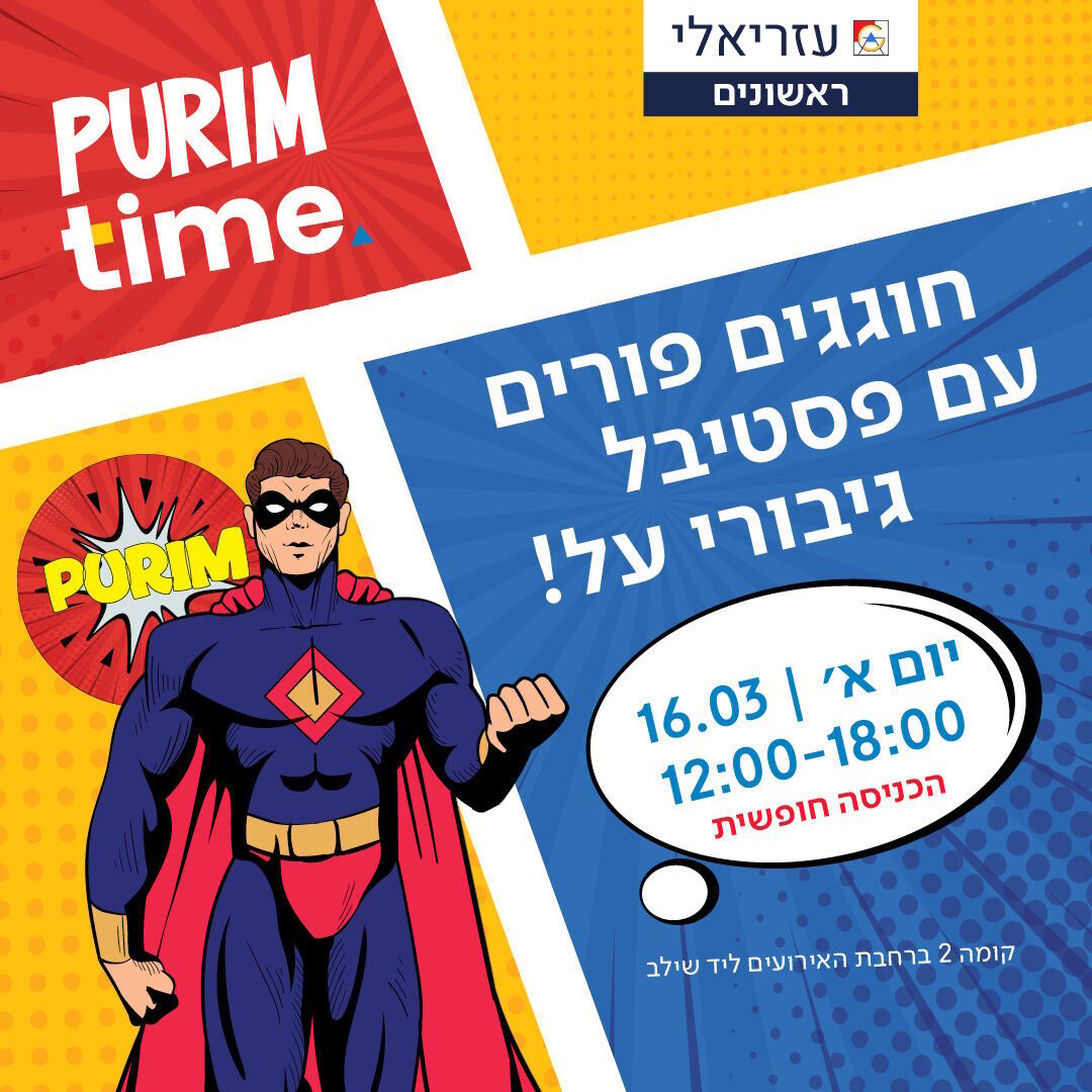 קניון עזריאלי ראשונים בראשון לציון מזמין את הציבור לפסטיבל פורים מיוחד בנושא גיבורי על. האירוע יתקיים ביום ראשון, ה-16 במרץ, בין השעות 12:00 ל-18:00 בקומה השנייה ברחבת האירועים ליד חנות שילב.