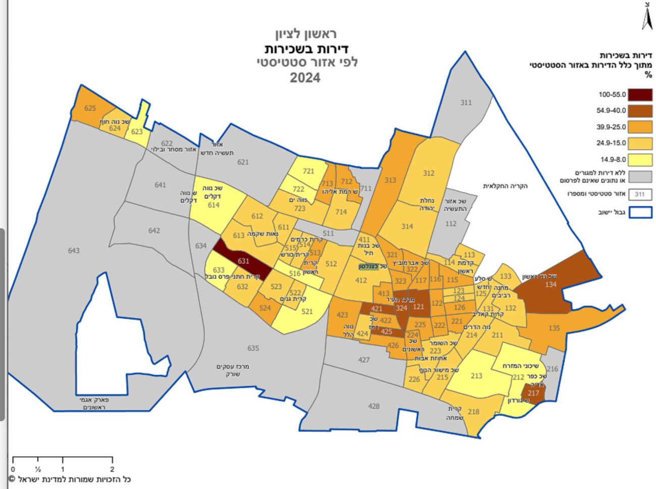 הלמ"ס: קרוב ל27% מהדירות בראשון לציון נמצאות בשכירות
