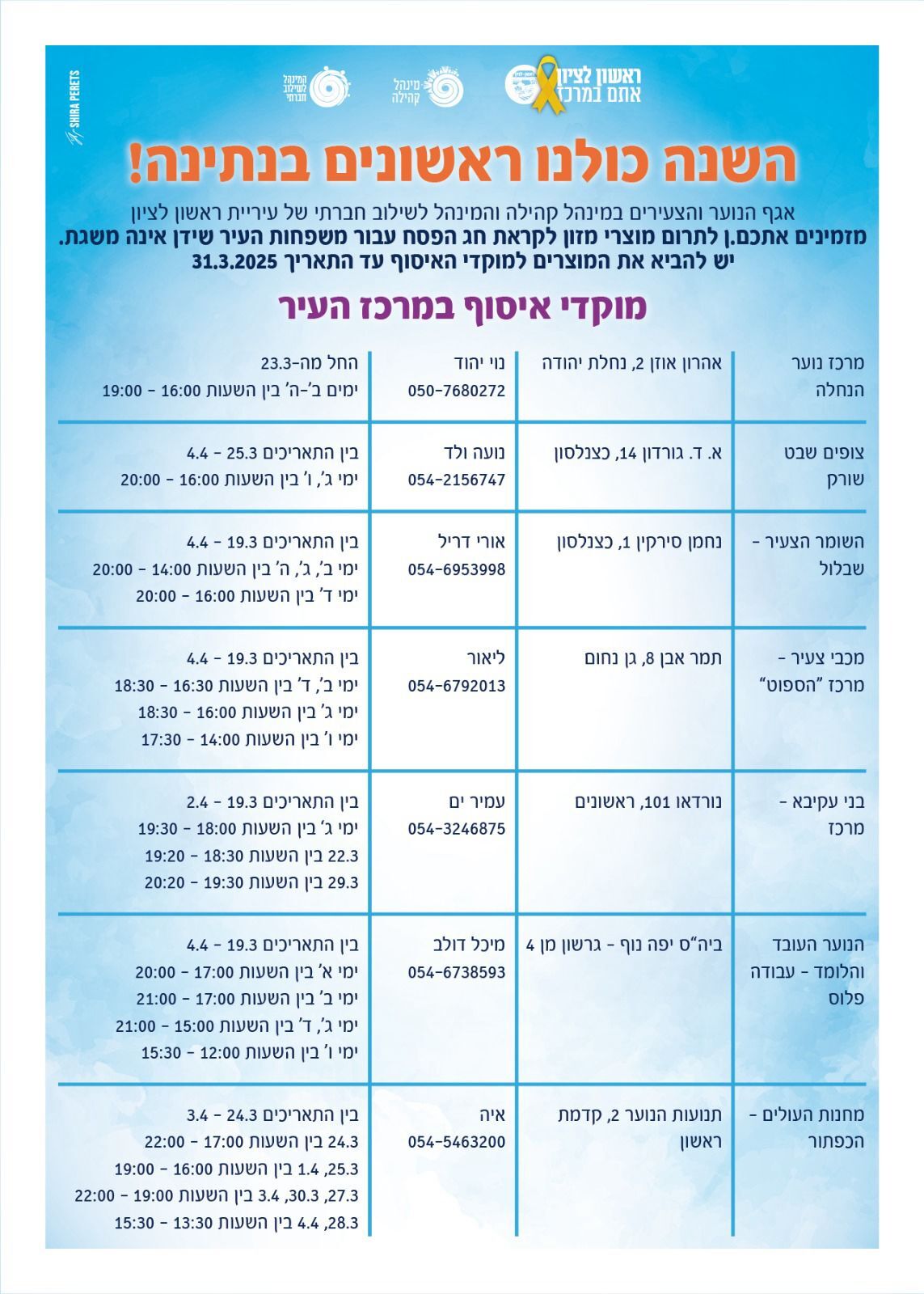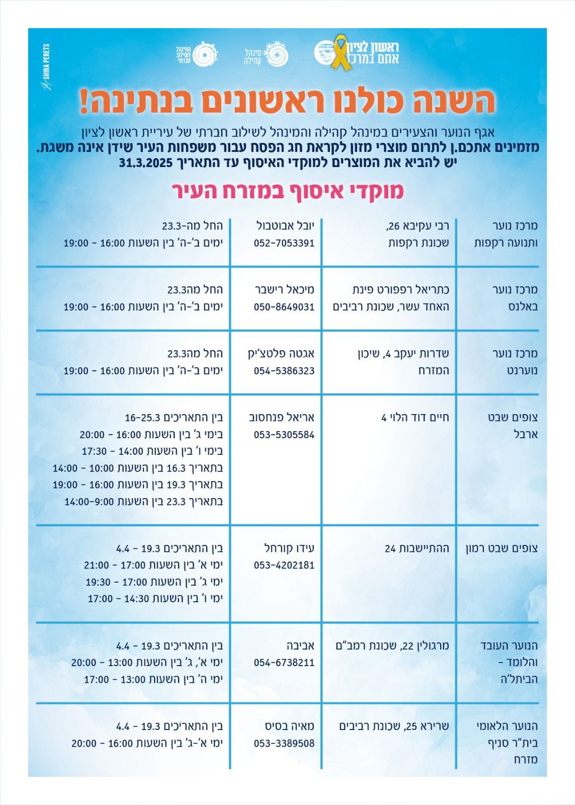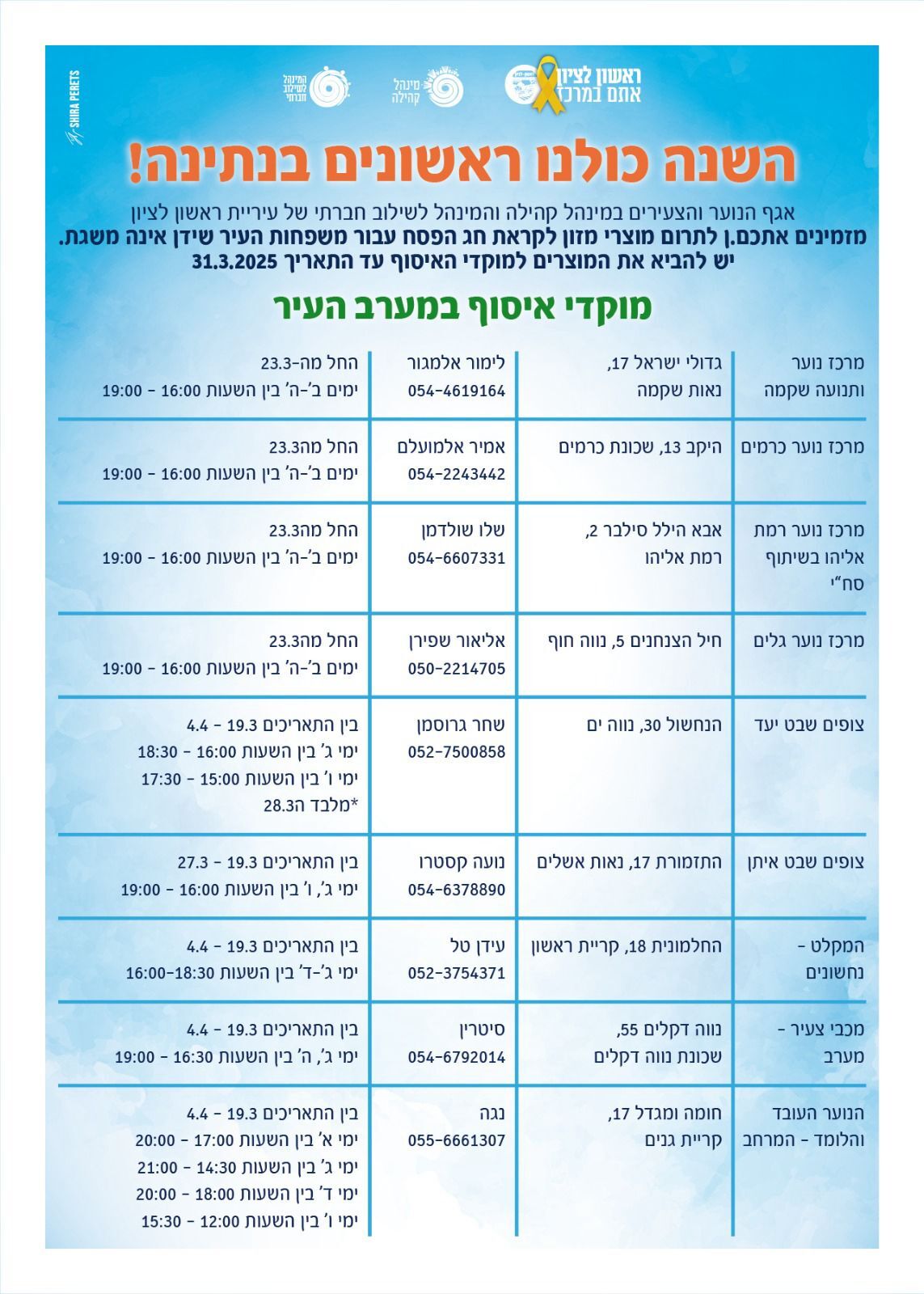 אגף הנוער וצעירים והמינהל לשילוב חברתי של עיריית ראשון לציון החלו במבצע השנתי לאיסוף תרומות לחג הפסח