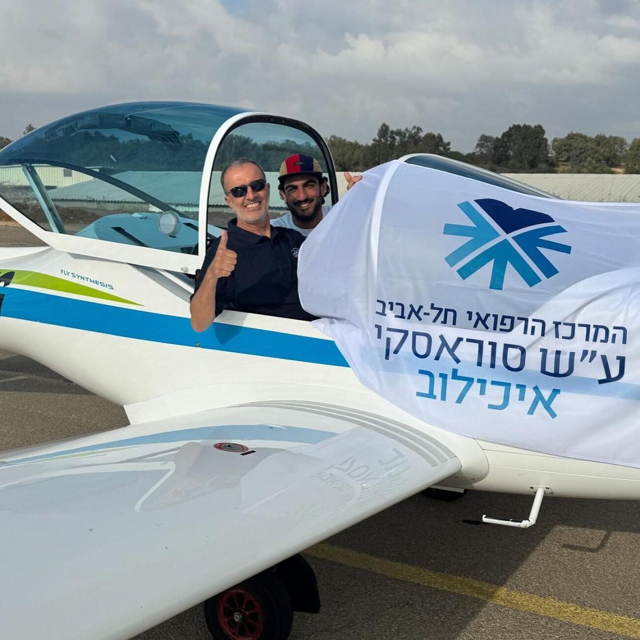מטס התרומה לקהילה במנחת ראשון לציון לזכרו של צביקה אולקיניצקי ז"ל הטיס פצועי 'חרבות ברזל' ששוקמו באיכילוב בשיתוף איגוד התעופה הספורטיבית