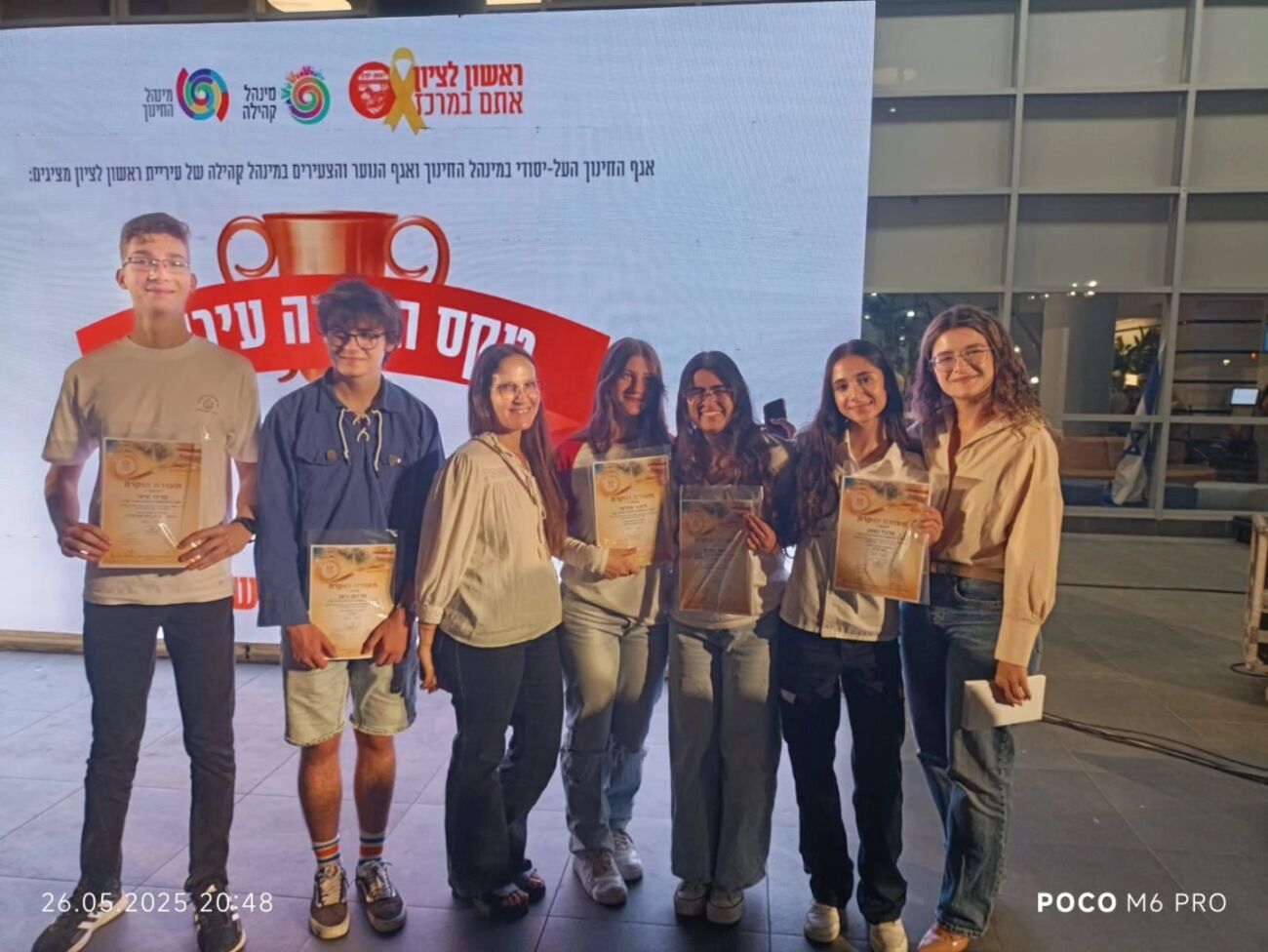 75 בני נוער מראשון לציון קבלו תעודות הוקרה במסגרת טקס הפעיל המצטיין העירוני