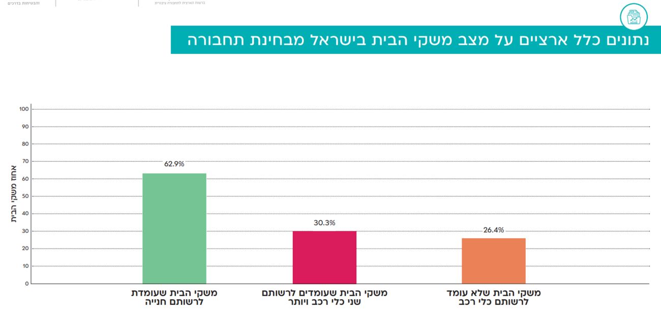 ל30.3% ממשקי הבית עומדים 2 כלי רכב או יותר